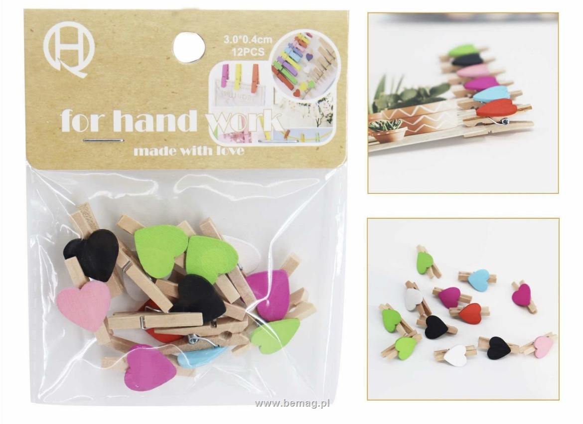 Klamerki drewniane z serduszkami 12szt 60520