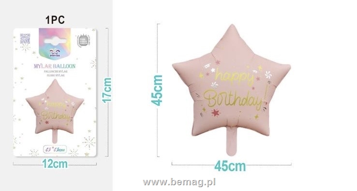 Balon foliowy gwiazdka Happy Birthday 45cm FB2645