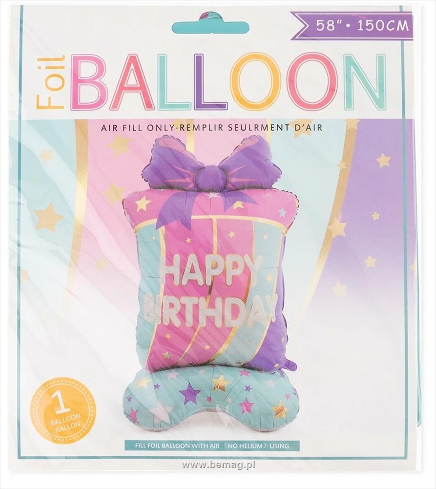 Balon foliowy stojący prezent Happy Birthday 58 quot;x150cm Al-1539