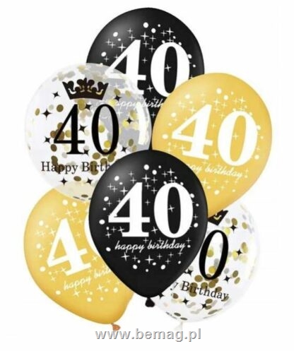 Zestaw balonów 40 urodziny z konfetti 12cali 6szt. 400154
