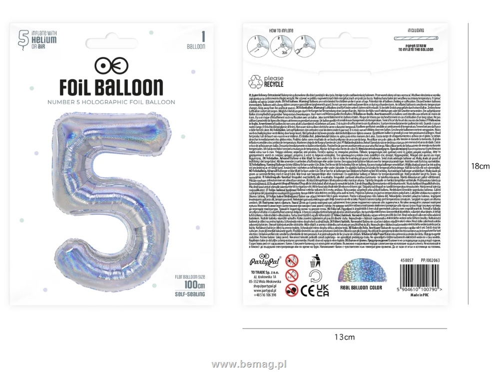 Balon foliowy cyfra 5 holograficzny 100cm 450057