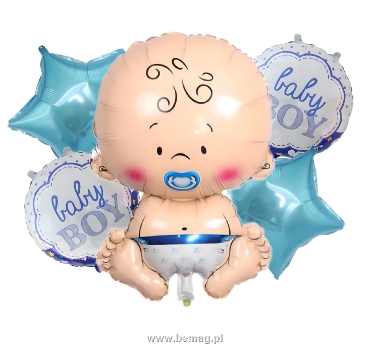 Balony na Baby Shower Bobas Chopiec Baby Boy Zestaw 5 szt Gwiazdki Balon RC-K-1864