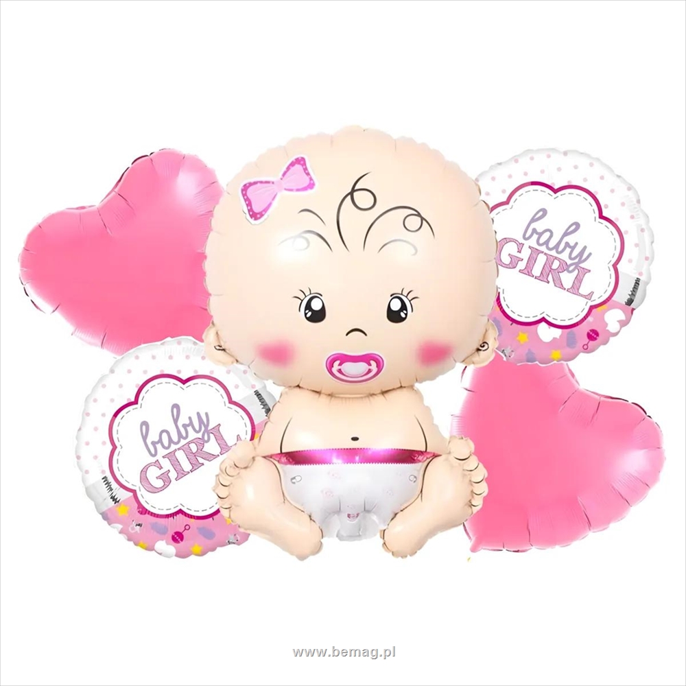 Balony na Baby Shower Bobas Dziewczynka Baby Girl Zestaw 5 szt Gwiazdki RC-K-1865