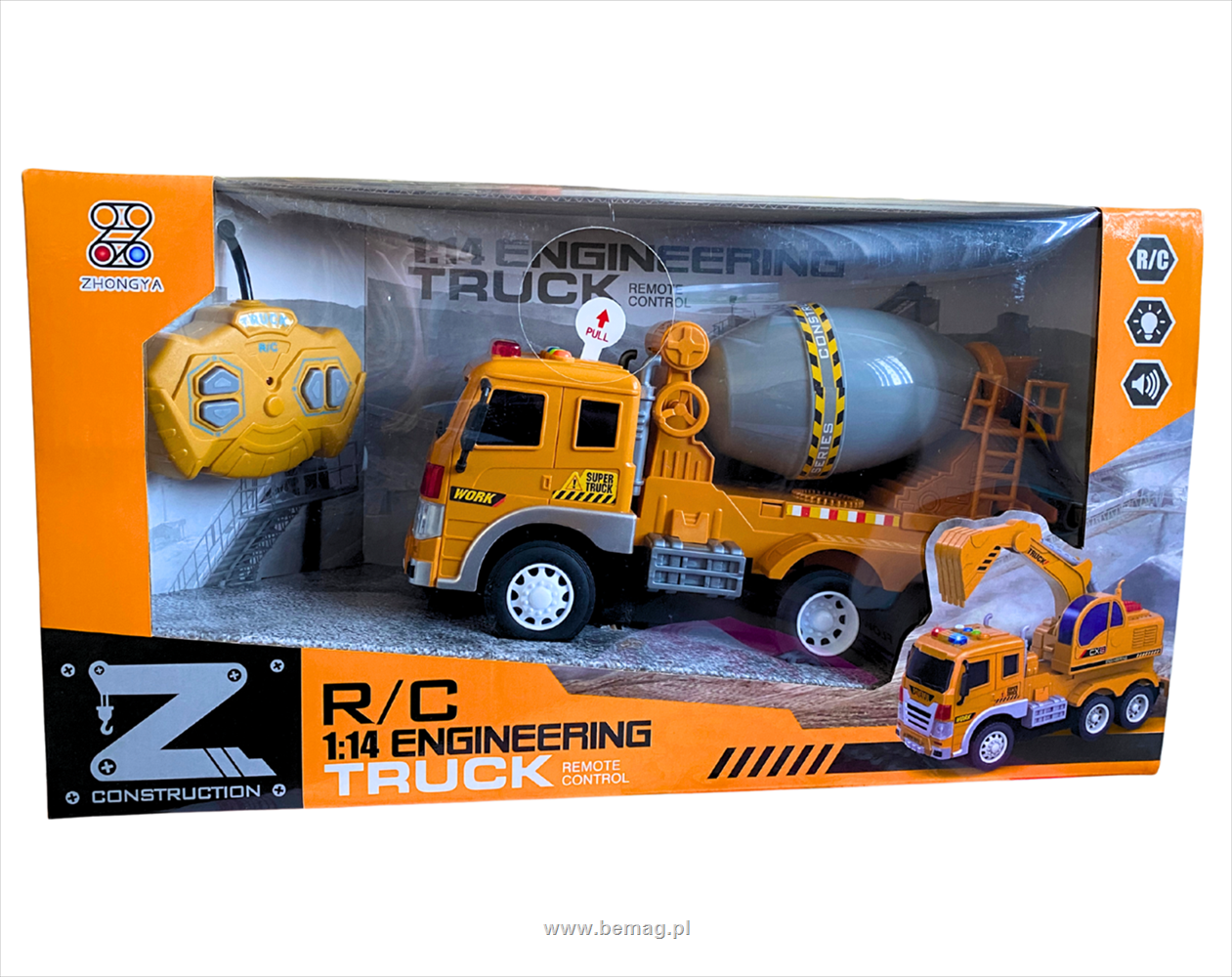 Betoniarka RC, wymiary 24x13x9cm, jazda przód-tył, lewo-prawo, światła