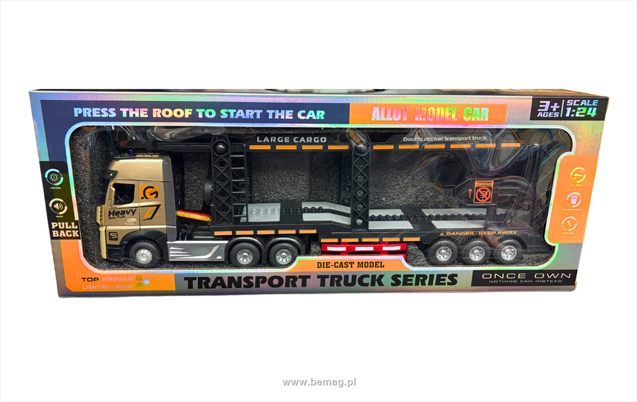 Ciagnik siodłowy z lawetą piętrową, metalowy,światła, muzyka,do przewo