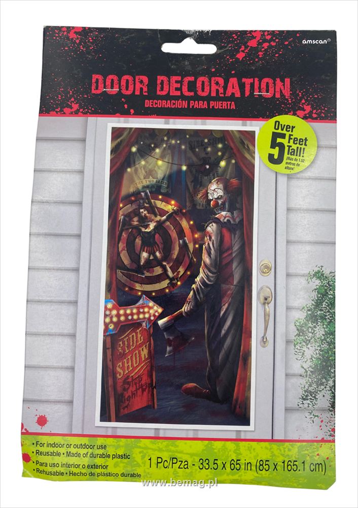 DEKORACJA na drzwi KLAUN upiór OFIARA HALLOWEEN