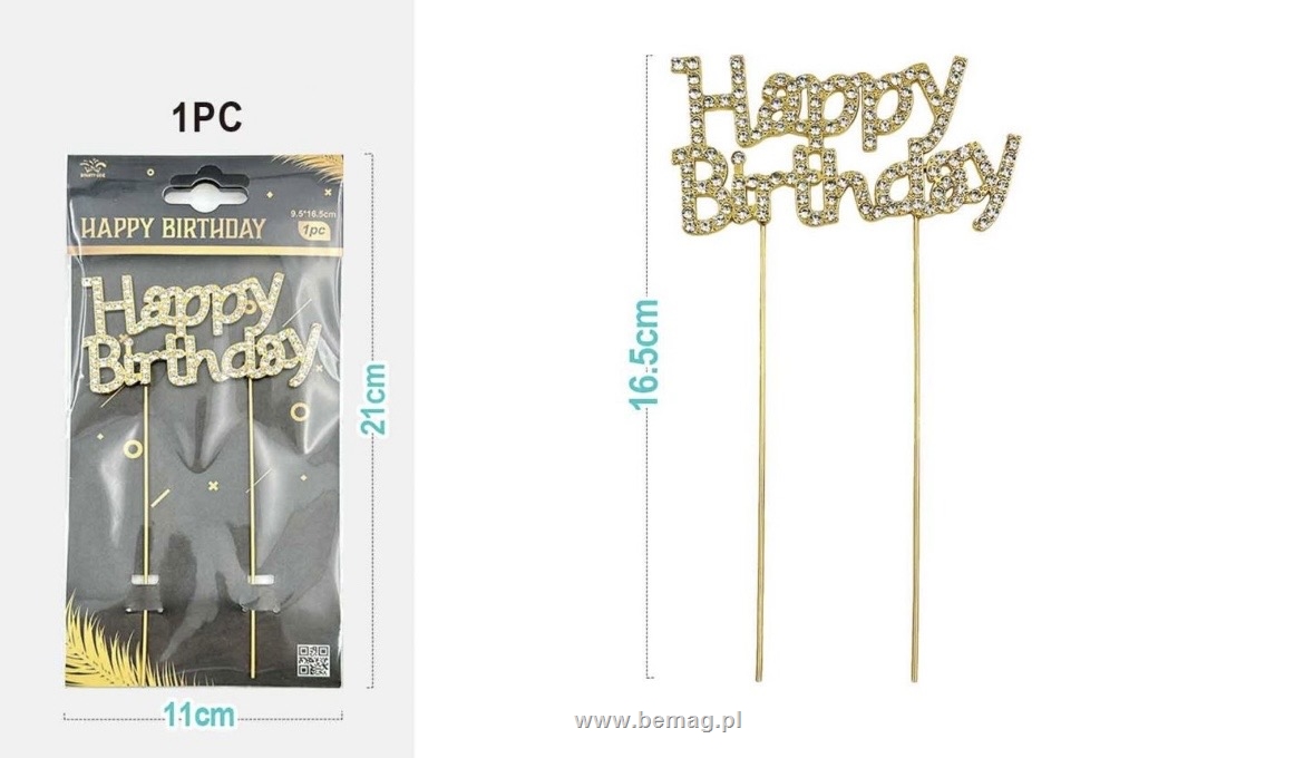 Dekoracja na tortu topper Happy Birthday błyszczący 16,5cm DC0383