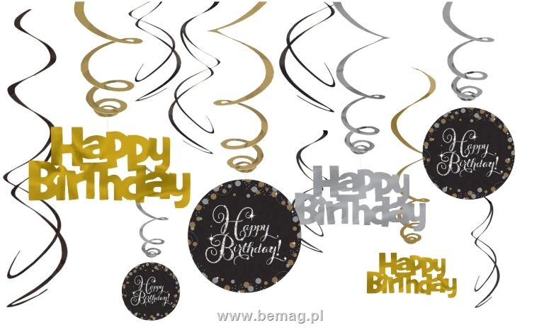 Dekoracja urodzinowa wisząca Happy Birthday Gold 61cm 12szt