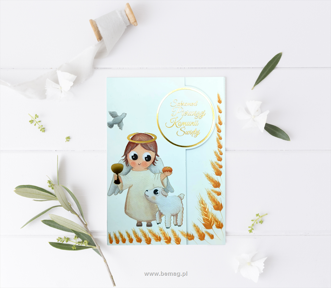 KARNET B6 KOMUNIA KÓŁKO ANIOŁ BARANEK