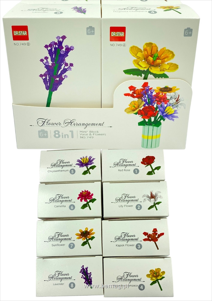 KLOCKI KONSTR KWIATY 9X15X5 MIX MC DISP8 128 256