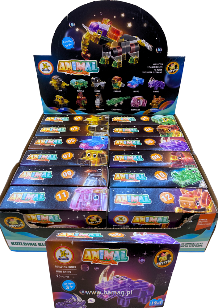 Klocki konstrukcyjne kryształowe zwierzęta, zbuduj słonia z 12 różnych