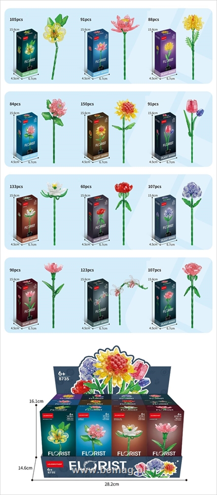 PROM Klocki konstrukcyjne kwiat 12 rodzaji,pakowane w display po 12 sztuk