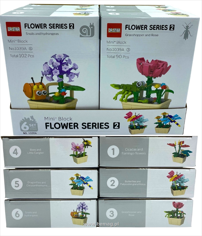 Klocki konstrukcyjne kwiat z owadem w doniczce, ilość elementów około,