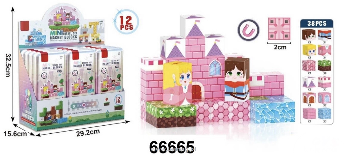 Klocki magnetyczne kostki różowe w metalowym pudełeczku 38el 66665