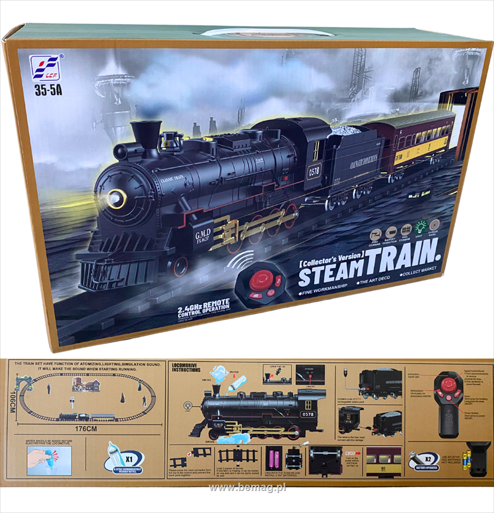Kolejka na radio,światła,2,4GHz,dł.toru:176 cm,spray,zasilanie 2xAA+2x