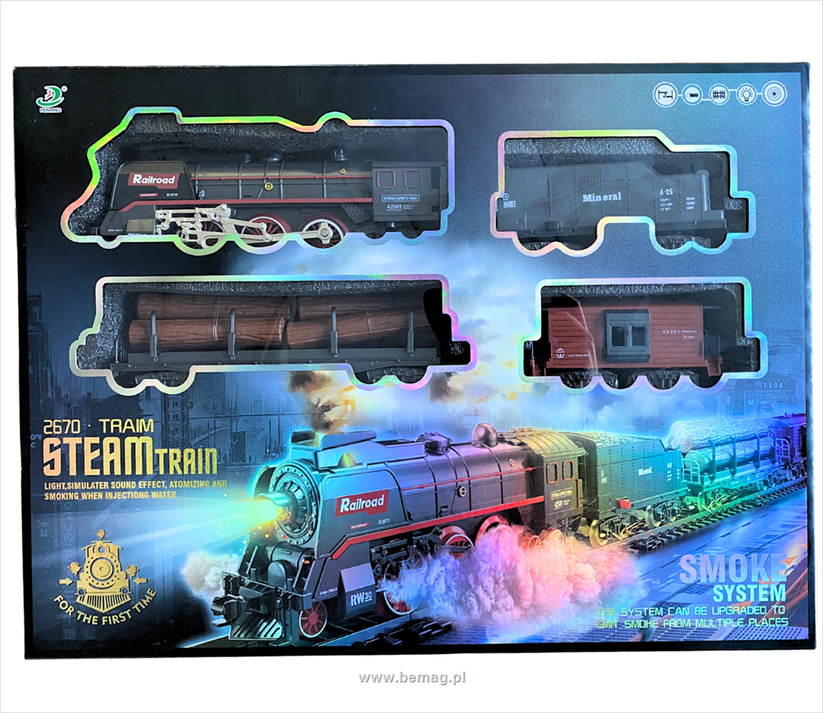 Kolejka,lokomotywa+3 wagoniki,światła,dźwięki, dym, wym:22, wagoniki:1
