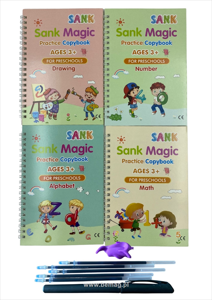 Książeczki do nauki pisania z pisakami (kpl 4szt z pisakiem i wkładami wymiennymi)