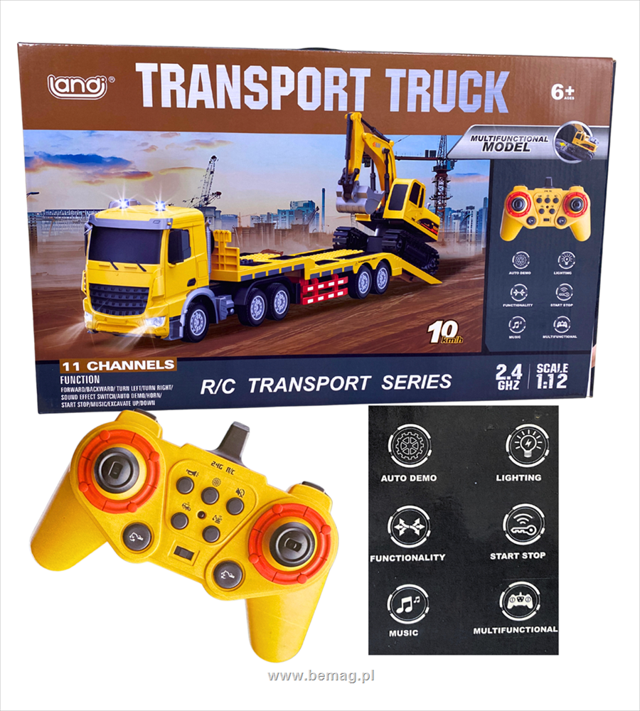 Laweta z koparka,fullfunction,światła,muzyka,zasilanie 3,7V+2AA i 3,7V
