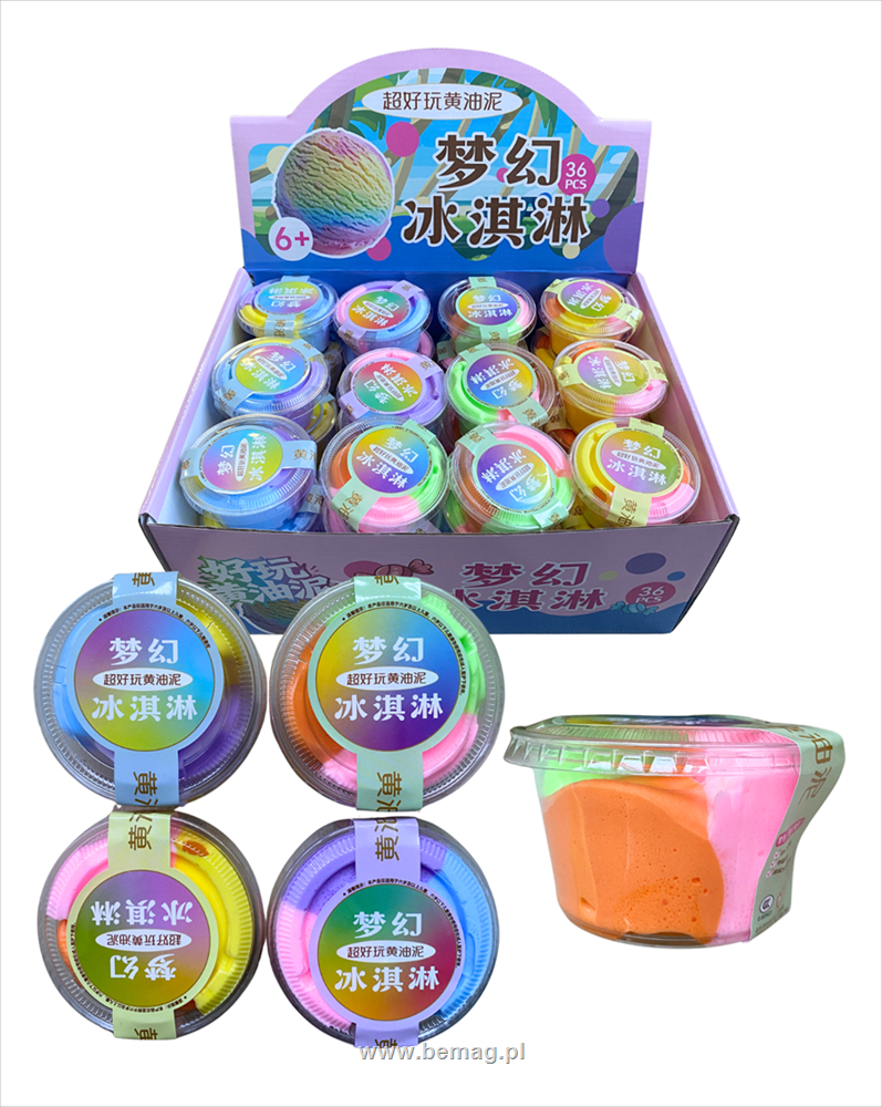 Masa miękka milutka rozciągająca 3koloryw plasikowym pudełeczku (36szt w displayu)