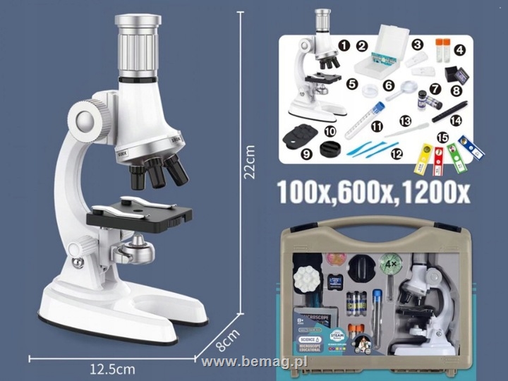 -Mikroskop w walizce powiększenie 100x 600x 1200x 22x12,5x8cm plastic b