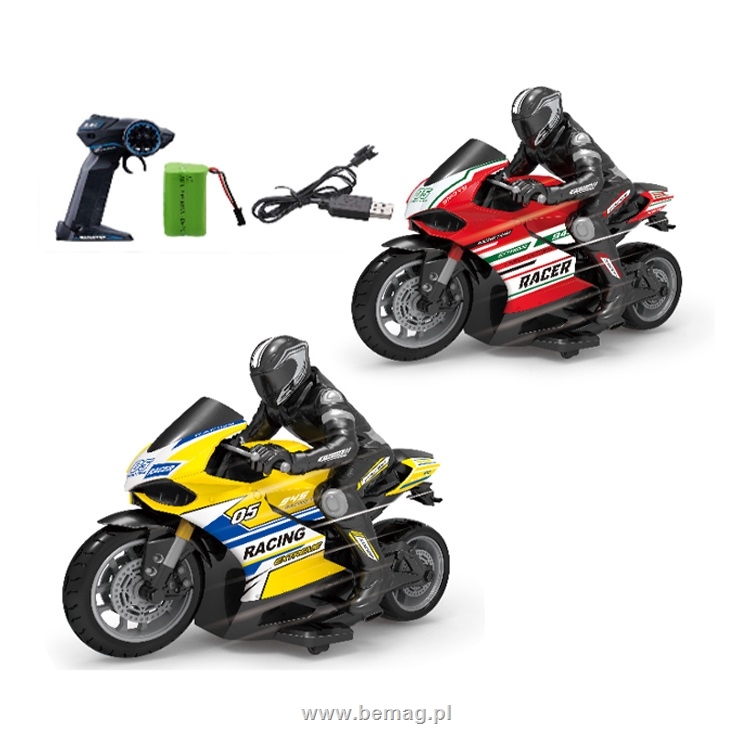 Motocykl z motocyklistą na radio,skala 1:10,jazda przód/tył/lewo/prawo