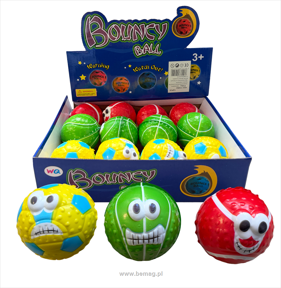 Piłka wysokoodbijająca sie z buźkami 12szt w displayu 11052