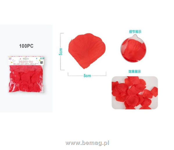 Płatki róż czerwone 100szt 5x5cm GJ0059