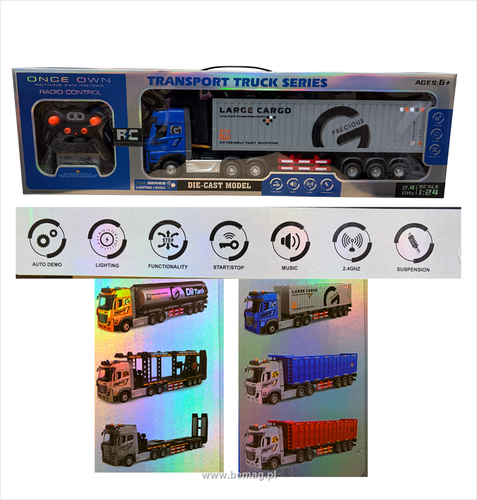 PROM Ciągnik siodłowy z kontenerem, metalowyna radio, światła, muzyka, ska