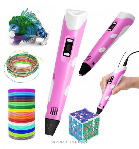 PROM Długopis 3D PE12 różowy+wkład, kabelładujący