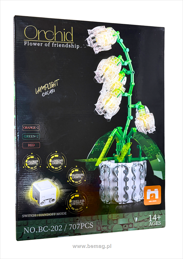 PROM Klocki - kwiat w doniczce z oświetleniem LED, 707 sztuk klocków w zest