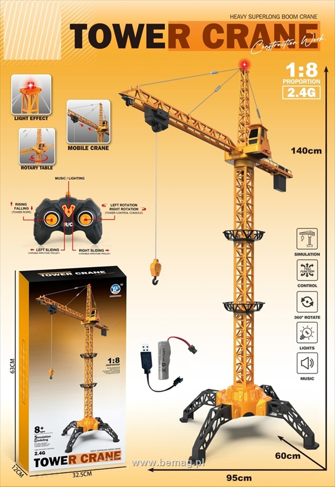 PROM Żuraw budowlany metalowy r/c, skala1:8, wymiary: 140x95x60cm, zasilan