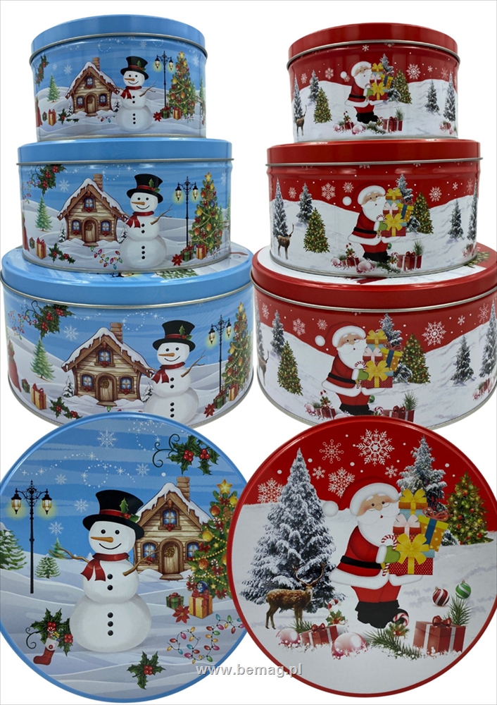 Puszka, pojemnik metalowy okrągły śWIŃTECZNY na pierniczki kpl 3 szt PUS-50515