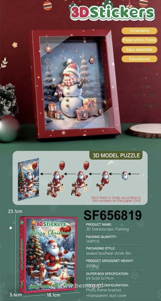 Puzzle 3D świąteczne naklejane w ramce 66110,66111,66112