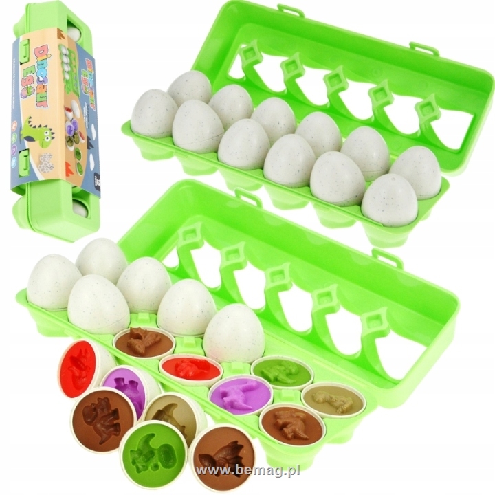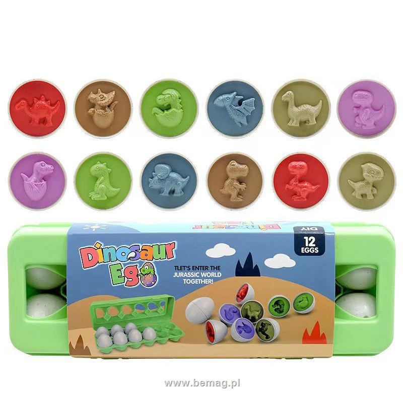 S.CENA 12 jajek - nauka dopasowywania kształtów - dinozaury. Opakowanie: wytł