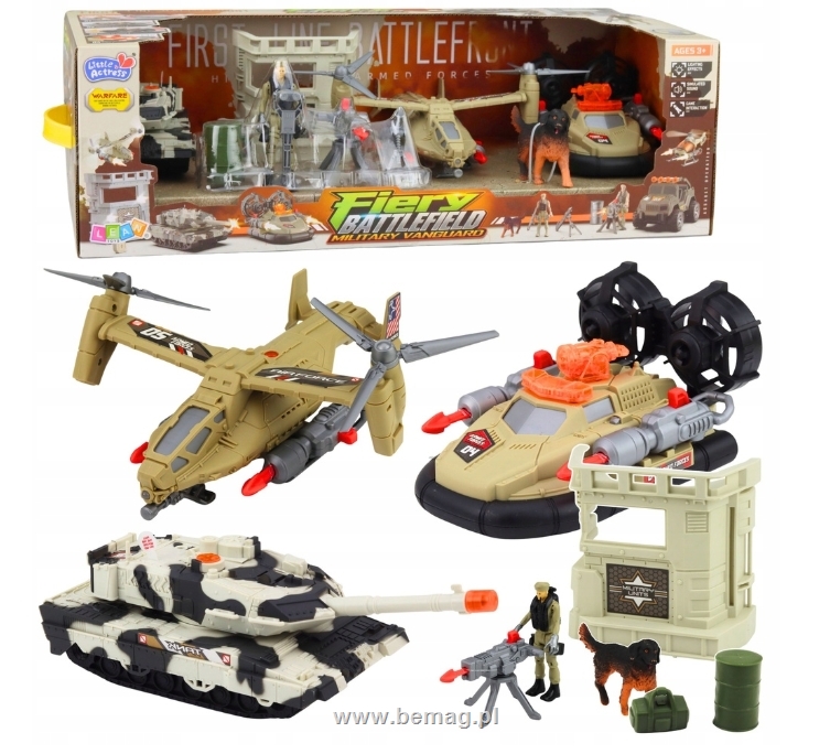 S.CENA 30538 - Zestaw Militarny WojskowyHelikopter Czołg Poduszkowiec Żołnierz Baza