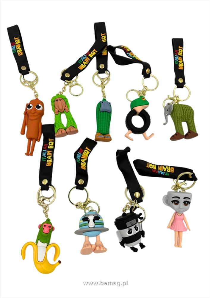 S.CENA Brelok gumowy z opaską duży Brainrot(12szt we woreczku)
