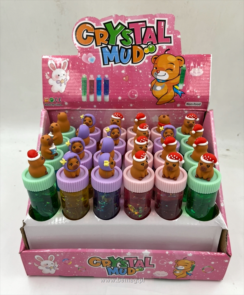 Slime 16cm ombre ze srebrekiem i figurką gumową kapibarą mix wzorów (24szt display) Z1108-9
