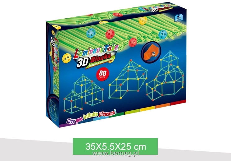 Słomki konstrukcyjne świecące w ciemności z namiotem(1,6x1,2m) 88 ele