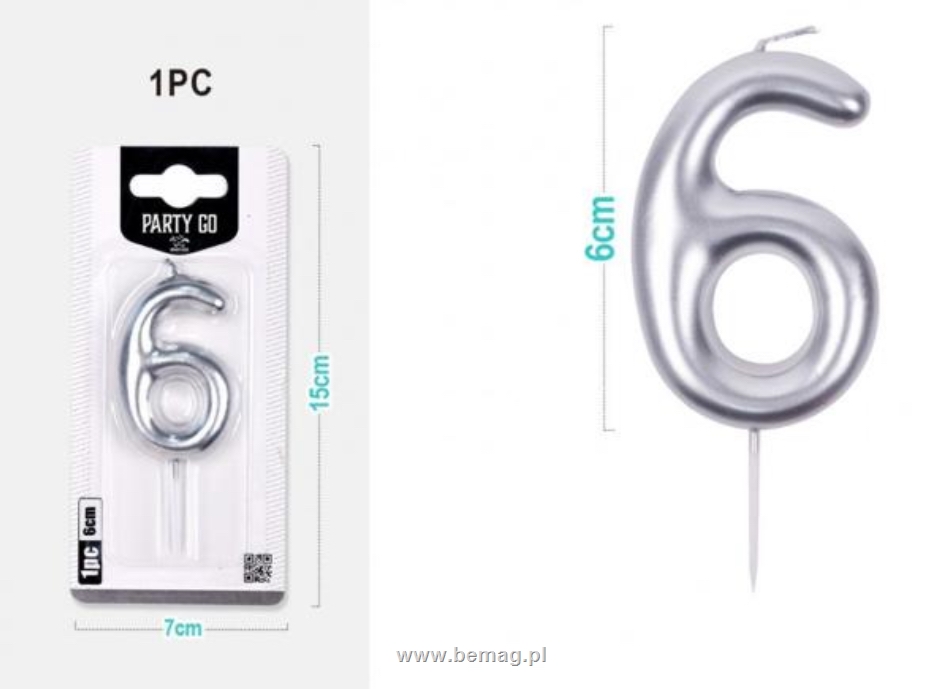 Świeczka srebrna 6cm na patyku 6 EA0028