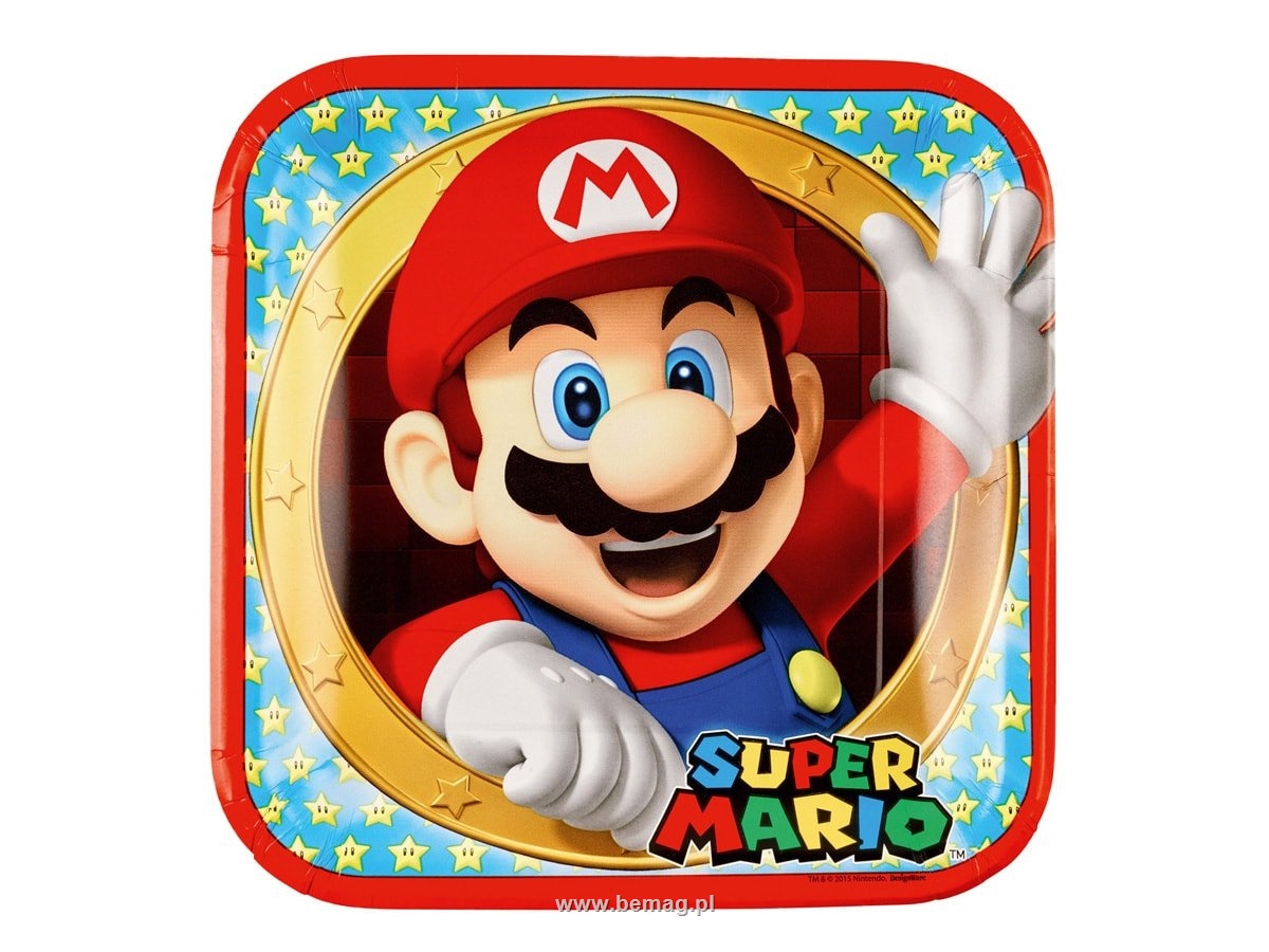 Talerzyki papierowe na urodziny Super Mario Bros - 23 cm - 8 szt