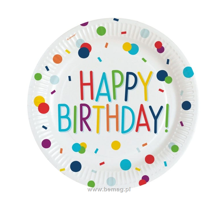 Talerzyki Urodzinowe Konfetti 23cm / 8szt. Happy Birthday