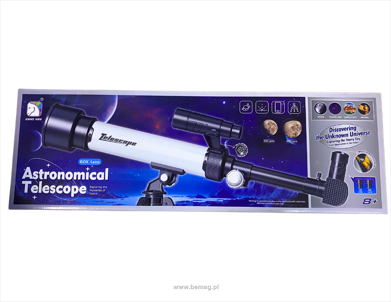 Teleskop,powiększenie: 30 i 60 razy,soczewki:16,6 mm/8.3 mm,uchwyt na