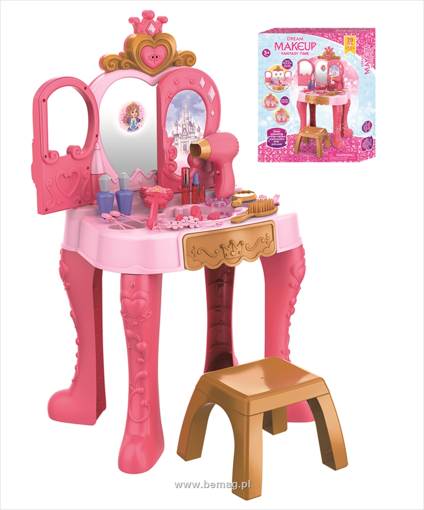 Toaletka,muzyka,światła,z krzesełkiem,akcesoria,20 elem.,suszarka na b