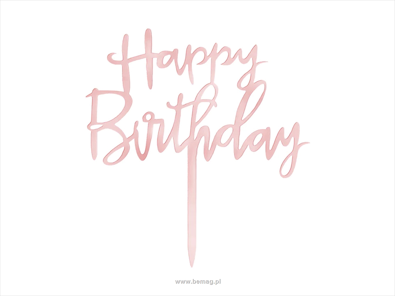 Topper na tort Happy Birthday lustrzany rose gold 1szt. 143735