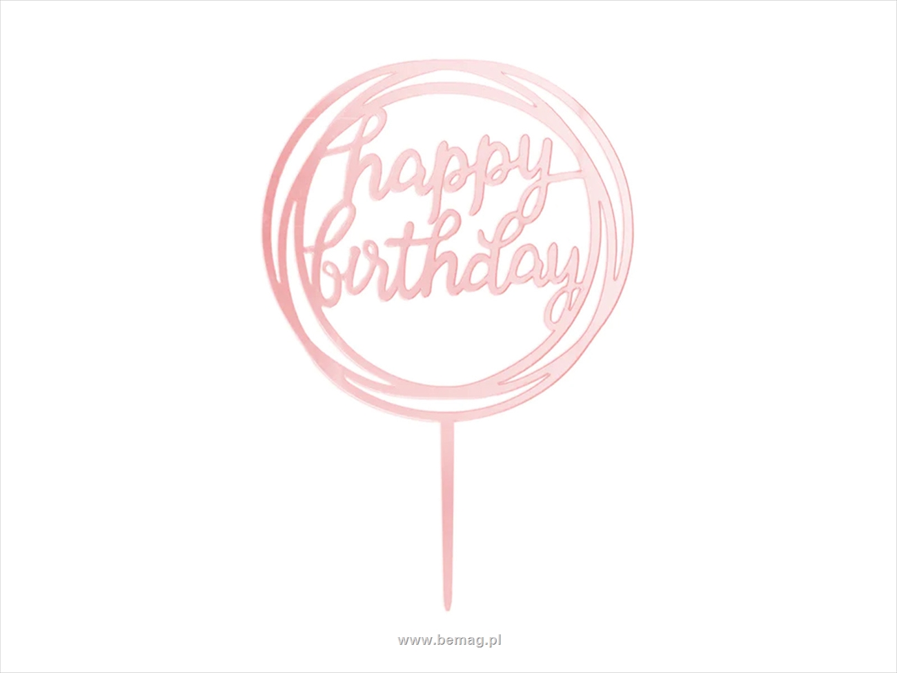 Topper na tort Happy Birthday okrągły lustrzany rose gold 1szt. 143650
