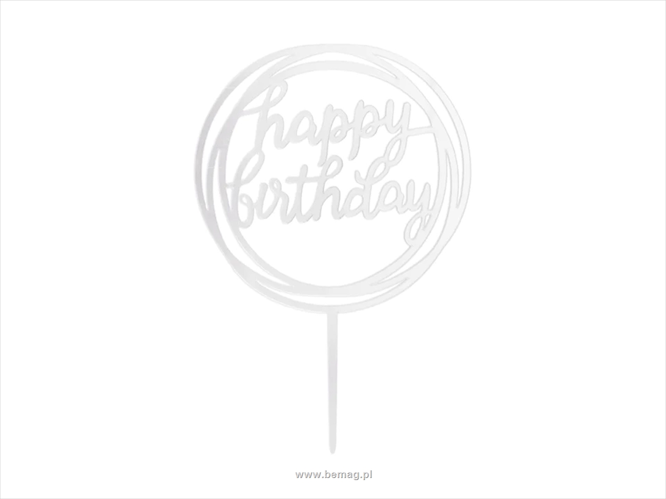 Topper na tort Happy Birthday okrągły lustrzany srebrny 1szt. 143643