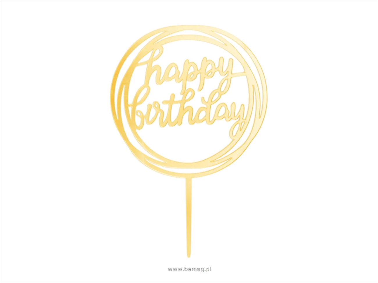 Topper na tort Happy Birthday okrągły lustrzany złoty 1szt. 143636