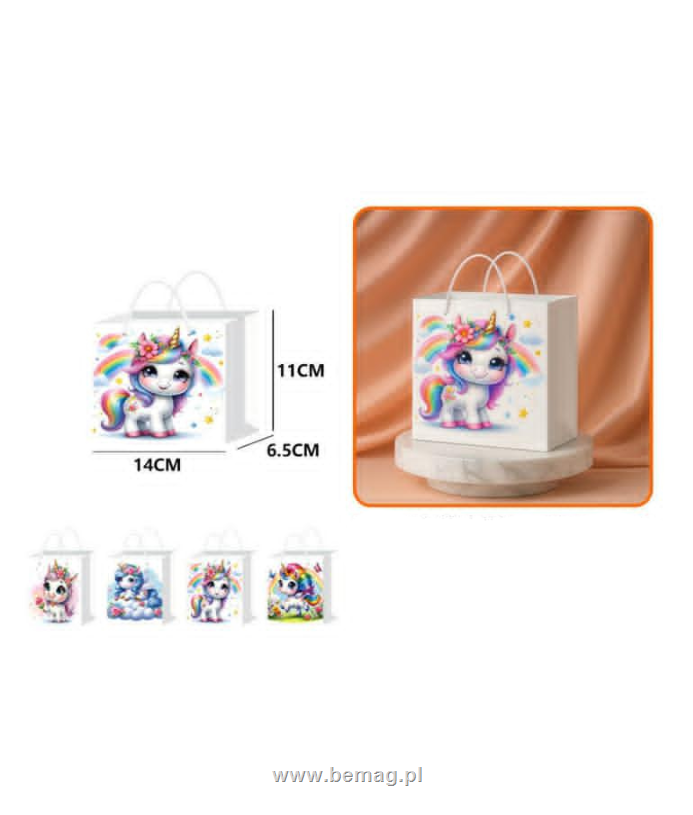 Torebka prezentowa jednorożce 14x11x6.5cm 65370