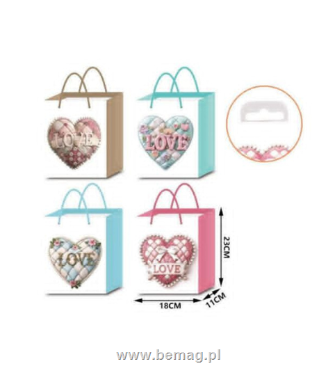 Torebki prezentowe serduszka 23x18x11cm 63508