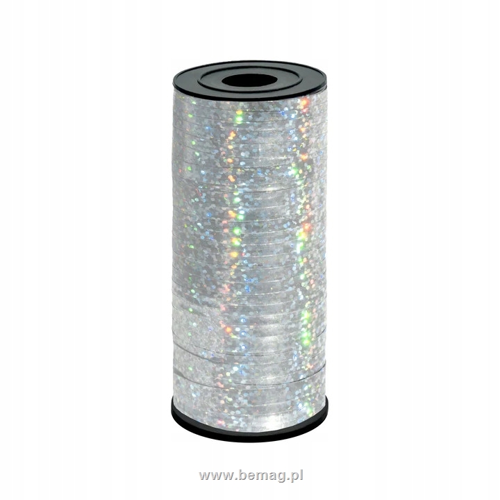 Wstążka plastikowa holograficzna brokatowa srebrna 92m 511403